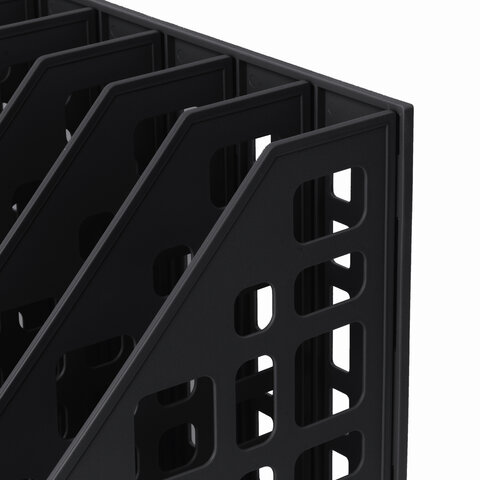 Лоток вертикальный для бумаг BRAUBERG "MAXI Plus", 240 мм, 6 отделений, сетчатый, сборный, черный, 237015