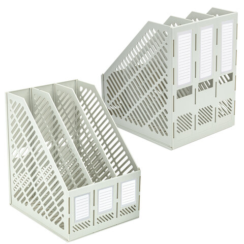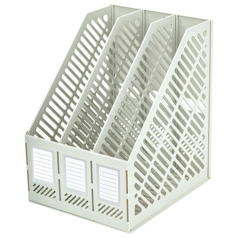 Лоток вертикальный для бумаг BRAUBERG "Office-Expert", 215 мм, 3 отделения, сборный, серый, 238018