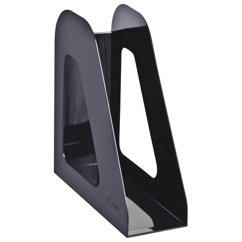 Вертикальный вместительный лоток для бумаг в оригинальном дизайне из высококачественного пластика с гладкой глянцевой поверхностью.