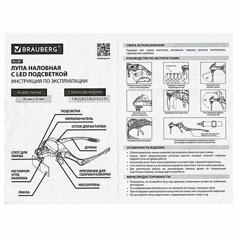 Лупа налобная BRAUBERG – это пять увеличений в диапазоне от 1х до 3,5х, встроенная светодиодная подсветка и возможность менять линзы в любой момент. С этой лупой ваши руки всегда будут свободными, а точность выполнения работ – очень высокой.