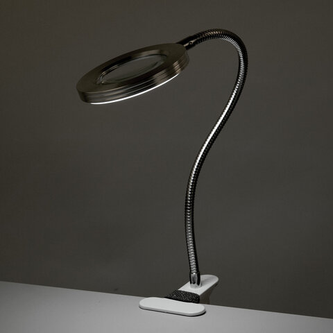 Лупа настольная на прищепке с LED-ПОДСВЕТКОЙ, диаметр 75 мм, увеличение 3, BRAUBERG, 455931