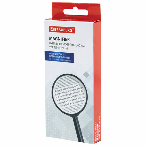 Лупа просмотровая BRAUBERG, диаметр 60 мм, увеличение 6, 451799