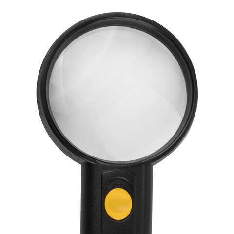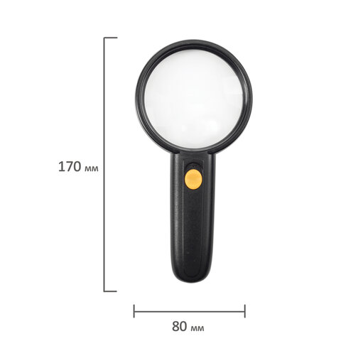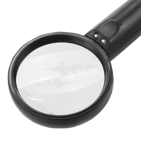Лупа просмотровая BRAUBERG, С ПОДСВЕТКОЙ, диаметр 75 мм, увеличение 3, корпус черный, 454130