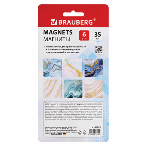 Квадратные стеклянные магниты BRAUBERG оригинального дизайна надежно прикрепят листы бумаги к магнитно-маркерной поверхности досок, флипчартов и холодильников.