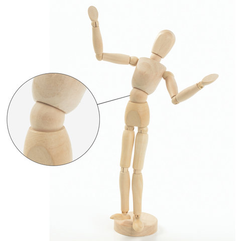 Деревянный манекен BRAUBERG ART "CLASSIC", изображающий мужскую человеческую фигуру с подвижными руками, ногами, головой. Применяется художниками для зарисовки различных человеческих поз.