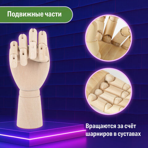Деревянный манекен BRAUBERG ART "CLASSIC" воспроизводит антропометрическую форму правой руки. Он используется художниками как наглядное пособие для зарисовок.