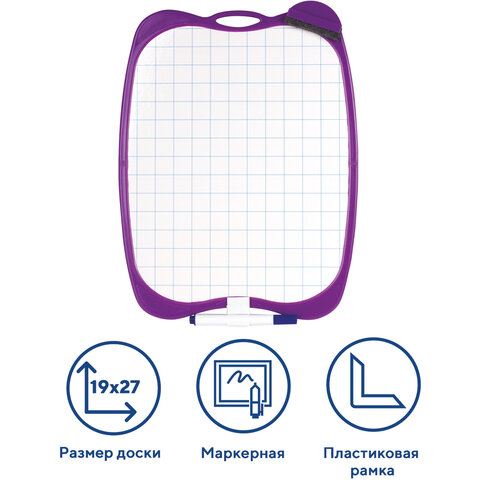 Доска двусторонняя маркерная A4 190х270 мм, БЕЛАЯ/КЛЕТКА, с маркером и стирателем, ЮНЛАНДИЯ, 236898