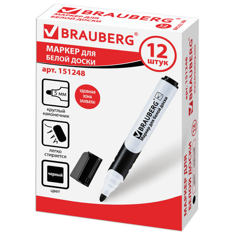 Высококачественный маркер BRAUBERG "SOFT" для белой доски. Предназначен для письма на досках с магнитно-маркерной поверхностью.