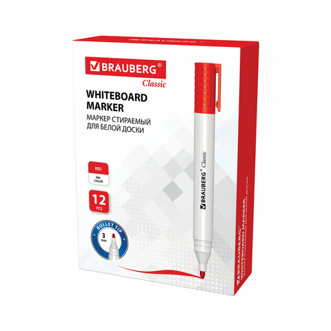 Маркер стираемый для белой доски КРАСНЫЙ, BRAUBERG "CLASSIC", 3 мм, с клипом, 152114