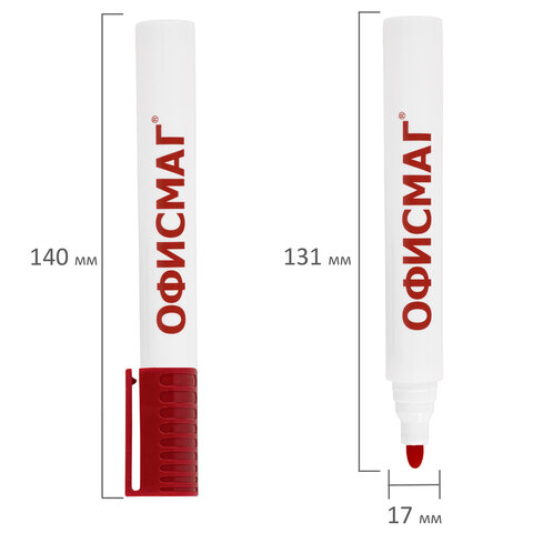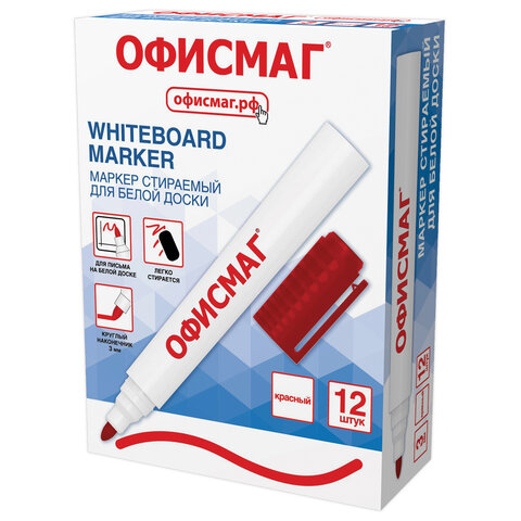 Маркер стираемый для белой доски КРАСНЫЙ, ОФИСМАГ, круглый наконечник, 3 мм, 152220