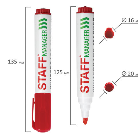 Маркер стираемый для белой доски КРАСНЫЙ, STAFF "Manager" WBM-491, 5 мм, с клипом, 151493