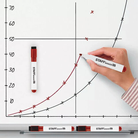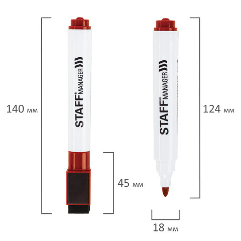 Маркер стираемый для белой доски на магните со стирателем, КРАСНЫЙ, STAFF "Manager" WBM-002, 3 мм, 152003