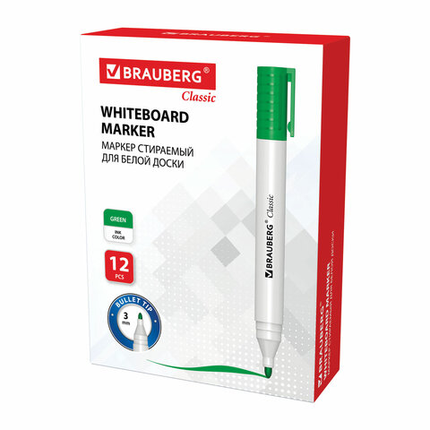 Высококачественный маркер BRAUBERG "CLASSIC" для белой доски. Предназначен для письма на досках с магнитно-маркерной поверхностью.