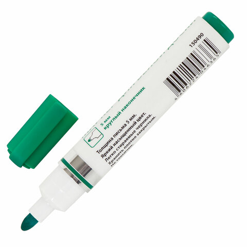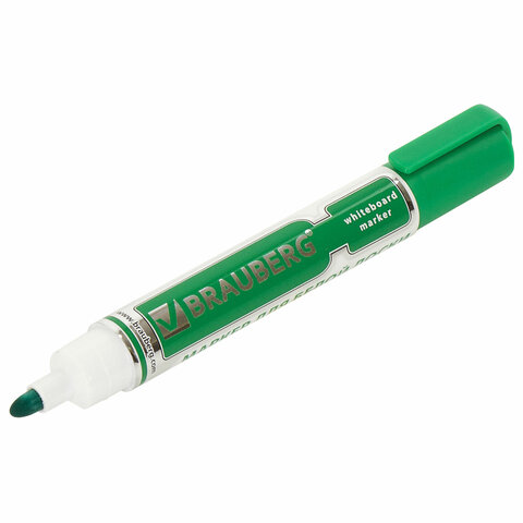 Маркер стираемый для белой доски ЗЕЛЕНЫЙ, BRAUBERG "Neo", 5 мм, с клипом, 150490