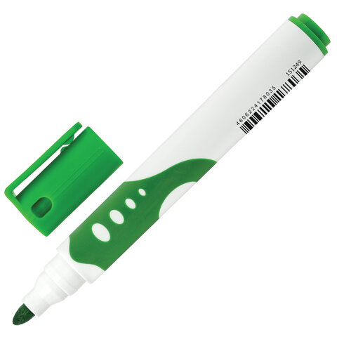 Маркер стираемый для белой доски ЗЕЛЕНЫЙ, BRAUBERG "SOFT", 5 мм, резиновая вставка, 151251