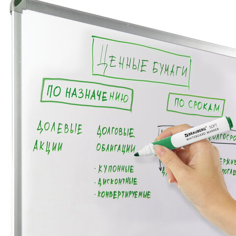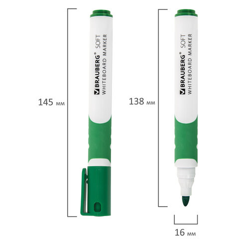 Высококачественный маркер BRAUBERG "SOFT" для белой доски. Предназначен для письма на досках с магнитно-маркерной поверхностью.