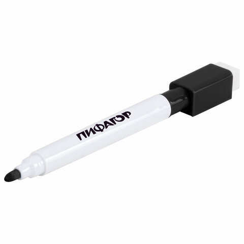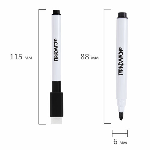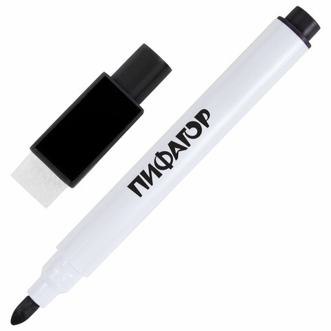 Маркеры стираемые 2 мм на магните со стирателем для белой доски и планера ЧЕРНЫЕ, НАБОР 8 ШТУК, ПИФАГОР, 152563