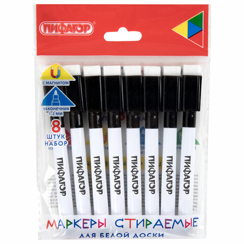 Набор стираемых маркеров для доски и магнитного планера ПИФАГОР предназначен для использования на изделиях с магнитно-маркерной поверхностью и стекле. Идеально подходит для рисования, игр, визуализации учебных процессов.
