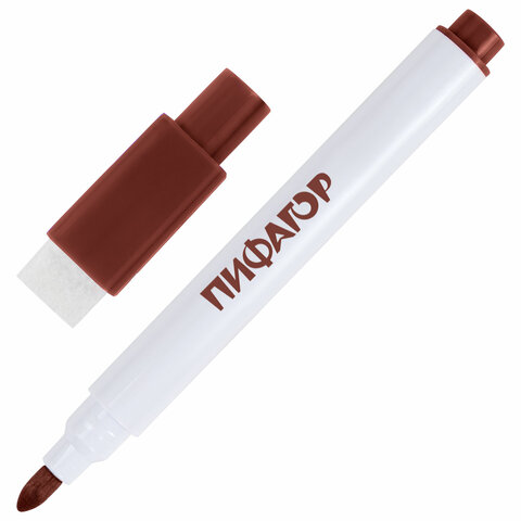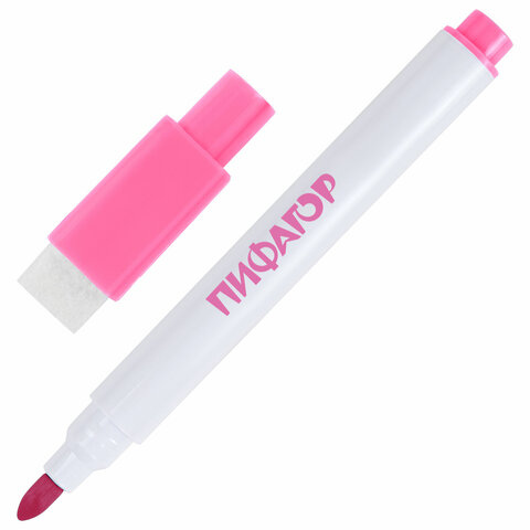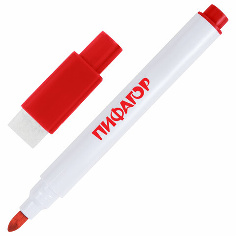 Маркеры стираемые 2 мм на магните со стирателем для белой доски и планера НАБОР 12 ЦВЕТОВ, ПИФАГОР, 152564