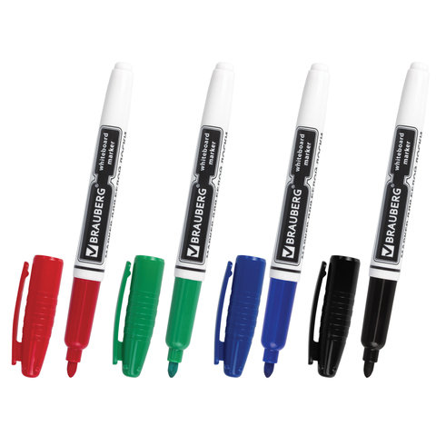 Высококачественный набор маркеров BRAUBERG для белой доски. Предназначен для письма на досках с магнитно-маркерной поверхностью.
