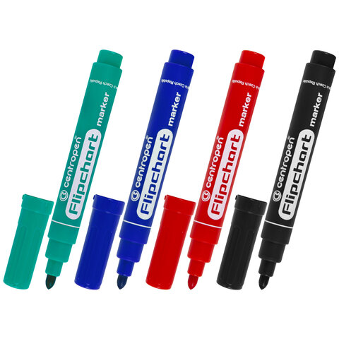 Маркеры для бумажного флипчарта CENTROPEN, НАБОР 4 ЦВЕТА, НЕПРОПИТЫВАЮЩИЕ, 2,5 мм, 8550/4, 5 8550 0402