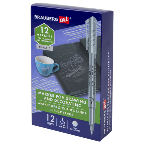 Маркер для декорирования и рисования BRAUBERG ART METALLIC предназначен для письма на любой поверхности: бумага, полиэтилен, дерево, стекло, металл, натуральная кожа, ткань, камень, плитка.