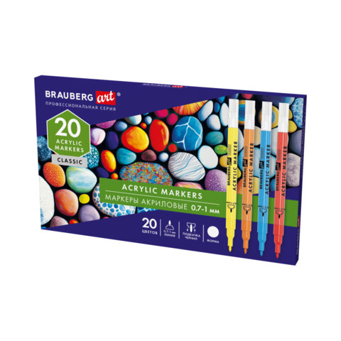 Маркеры акриловые для рисования и хобби 20 ярких цветов, линия 0,7-1 мм, BRAUBERG ART CLASSIC, 152522