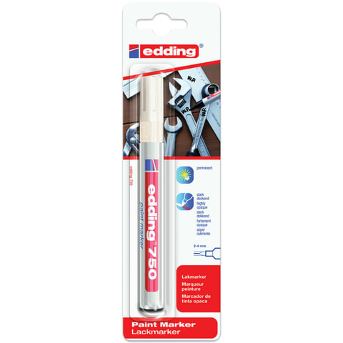 Маркер-краска лаковый EDDING "750", 2-4 мм, БЕЛЫЙ, круглый наконечник, алюминиевый корпус, Е750/49