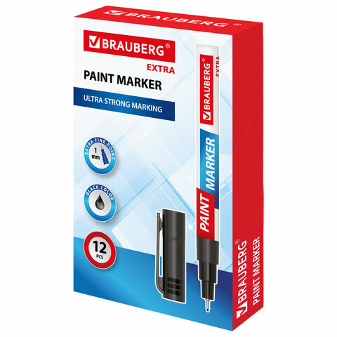 Маркер-краска лаковый EXTRA (paint marker) 1 мм, ЧЕРНЫЙ, УСИЛЕННАЯ НИТРО-ОСНОВА, BRAUBERG, 151960