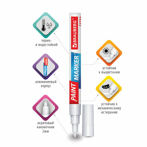 Набор маркеров-красок лаковых BRAUBERG EXTRA предназначен для маркировки на различных поверхностях: бетон, дерево, стекло, металл, резина, пластик как в промышленных, так и в бытовых целях.
