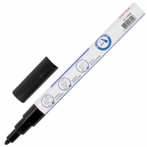 Маркер-краска лаковый EXTRA (paint marker) 2 мм, ЧЕРНЫЙ, УСИЛЕННАЯ НИТРО-ОСНОВА, BRAUBERG, 151968