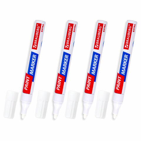 Маркер-краска лаковый EXTRA (paint marker) 4 мм, БЕЛЫЕ, НАБОР 4 шт., УСИЛЕННАЯ НИТРО-ОСНОВА, BRAUBERG, 152000
