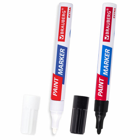 Маркер-краска лаковый EXTRA (paint marker) 4 мм, НАБОР 2 цвета, БЕЛЫЙ/ЧЕРНЫЙ, УСИЛЕННАЯ НИТРО-ОСНОВА, BRAUBERG, 151998