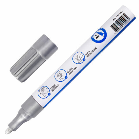 Маркер-краска лаковый EXTRA (paint marker) 4 мм, СЕРЕБРЯНЫЙ, УСИЛЕННАЯ НИТРО-ОСНОВА, BRAUBERG, 151982