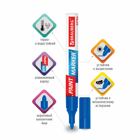 Маркер-краска лаковый BRAUBERG EXTRA предназначен для маркировки на различных поверхностях: бетон, дерево, стекло, металл, резина, пластик как в промышленных, так и в бытовых целях.