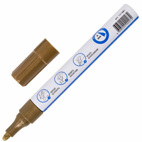 Маркер-краска лаковый EXTRA (paint marker) 4 мм, ЗОЛОТОЙ, УСИЛЕННАЯ НИТРО-ОСНОВА, BRAUBERG, 151981
