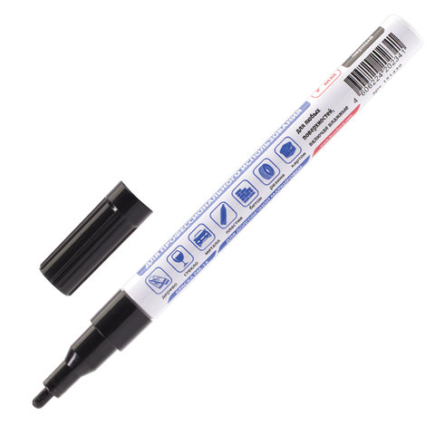 Маркер-краска лаковый (paint marker) 2 мм, ЧЕРНЫЙ, НИТРО-ОСНОВА, алюминиевый корпус, BRAUBERG PROFESSIONAL PLUS, 151439