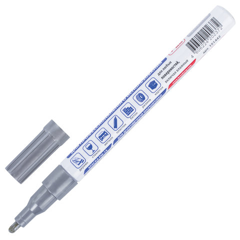 Маркер-краска лаковый (paint marker) 2 мм, СЕРЕБРЯНЫЙ, НИТРО-ОСНОВА, алюминиевый корпус, BRAUBERG PROFESSIONAL PLUS, 151442