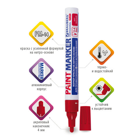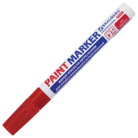 Маркер-краска лаковый (paint marker) 4 мм, КРАСНЫЙ, НИТРО-ОСНОВА, алюминиевый корпус, BRAUBERG PROFESSIONAL PLUS, 151446