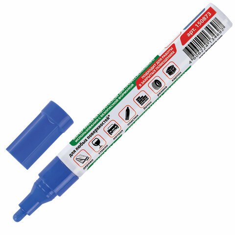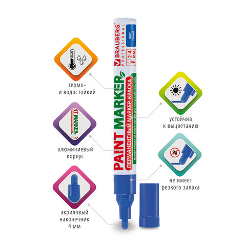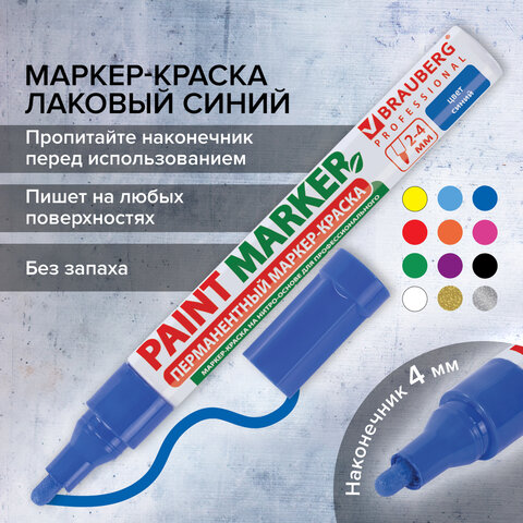 Маркер-краска лаковый (paint marker) 4 мм, СИНИЙ, БЕЗ КСИЛОЛА (без запаха), алюминий, BRAUBERG PROFESSIONAL, 150873