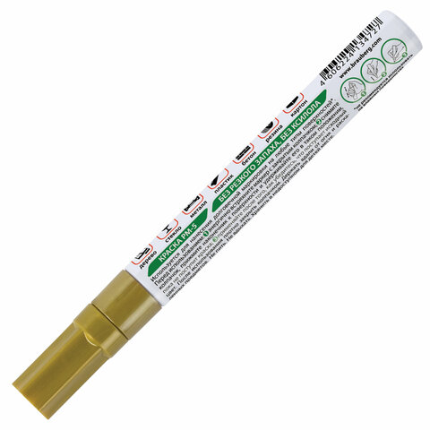 Маркер-краска лаковый (paint marker) 4 мм, ЗОЛОТОЙ, БЕЗ КСИЛОЛА (без запаха), алюминий, BRAUBERG PROFESSIONAL, 150876