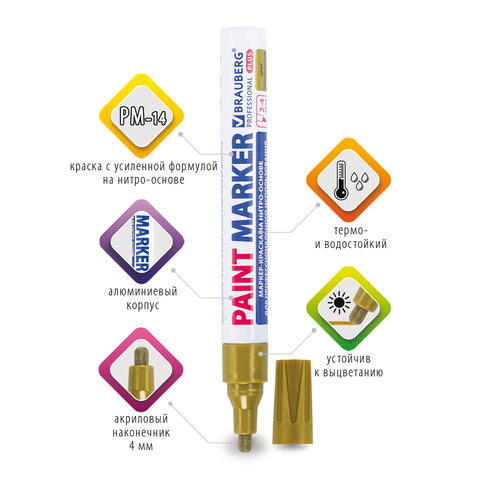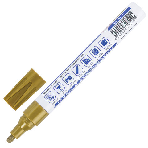 Маркер-краска лаковый (paint marker) 4 мм, ЗОЛОТОЙ, НИТРО-ОСНОВА, алюминиевый корпус, BRAUBERG PROFESSIONAL PLUS, 151449