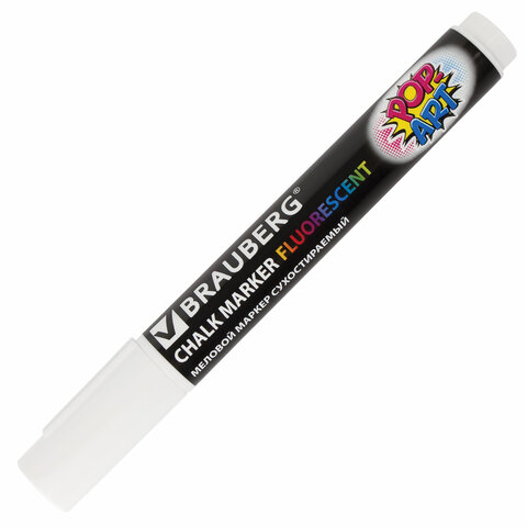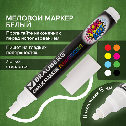 Маркер меловой "POP-ART" БЕЛЫЙ, 5 мм, стираемый, для гладких поверхностей, BRAUBERG, 151527