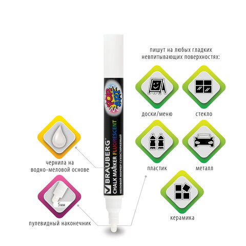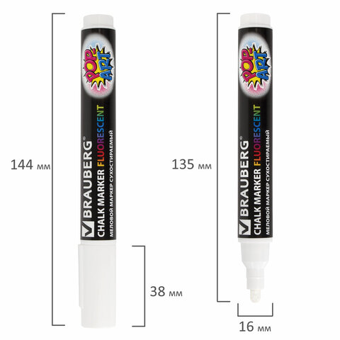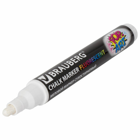 Стираемый меловой маркер BRAUBERG "POP-ART" - оригинальный инструмент для оформления различных зон помещений. Идеален для использования на школьных занятиях и детского творчества.