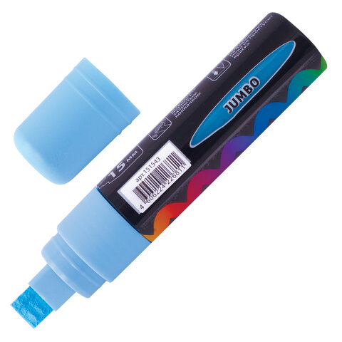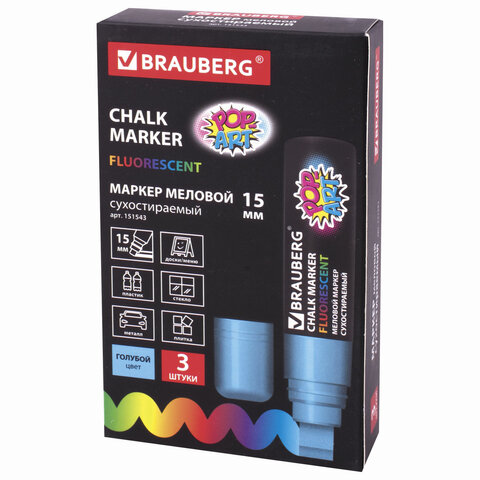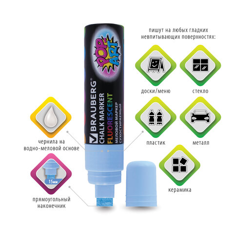 Маркер меловой "POP-ART" ГОЛУБОЙ, 15 мм, стираемый, для гладких поверхностей, BRAUBERG, 151543