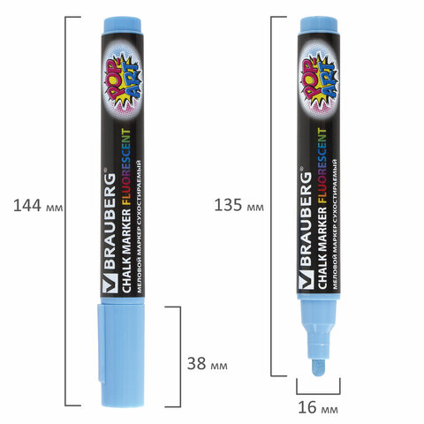 Стираемый меловой маркер BRAUBERG "POP-ART" - оригинальный инструмент для оформления различных зон помещений. Идеален для использования на школьных занятиях и детского творчества.