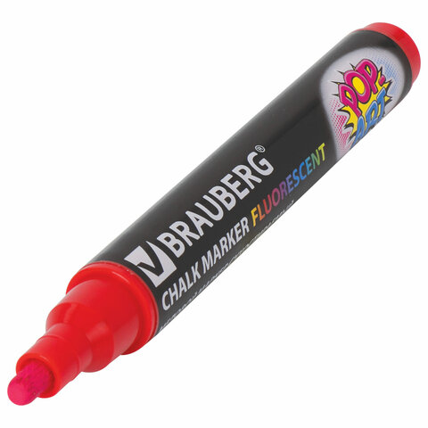 Маркер меловой "POP-ART" КРАСНЫЙ, 5 мм, стираемый, для гладких поверхностей, BRAUBERG, 151529