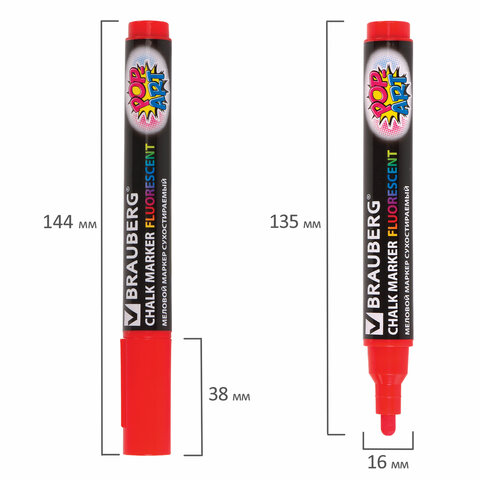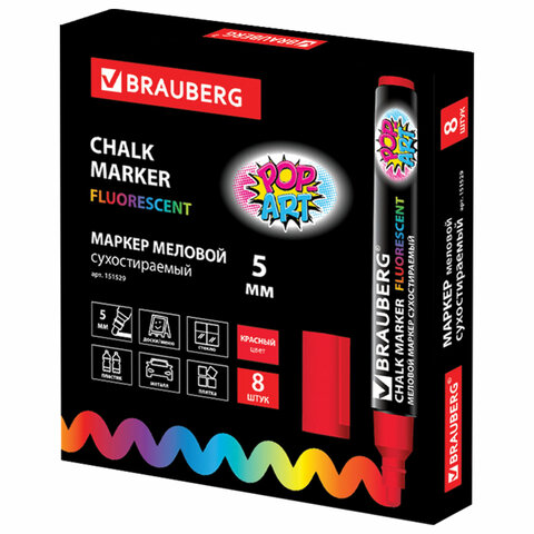 Стираемый меловой маркер BRAUBERG "POP-ART" - оригинальный инструмент для оформления различных зон помещений. Идеален для использования на школьных занятиях и детского творчества.