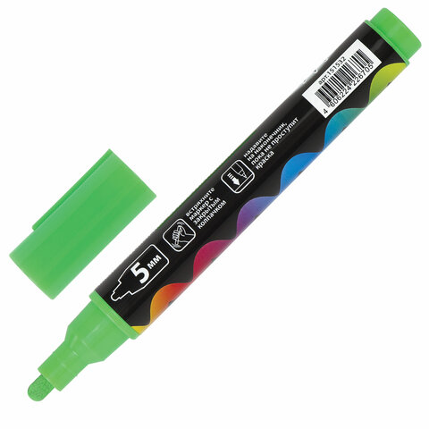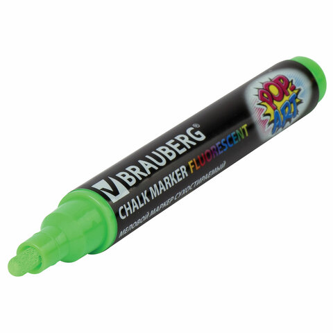 Маркер меловой "POP-ART" ЗЕЛЕНЫЙ, 5 мм, стираемый, для гладких поверхностей, BRAUBERG, 151532