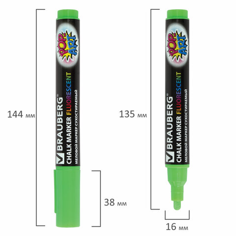 Стираемый меловой маркер BRAUBERG "POP-ART" - оригинальный инструмент для оформления различных зон помещений. Идеален для использования на школьных занятиях и детского творчества.